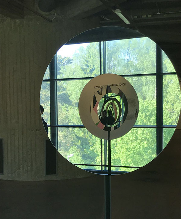 与芬兰其他建筑一样,此栋建筑的一侧墙壁由联排的落地玻璃组成,以便把稀有的北欧阳光尽可能的引入空间内部,变身当代艺术博物馆,并未就建筑本身作过多改变。落地窗边是EMMA的定制作品,一个由多面圆形玻璃组成的装置作品,它像是一个艺术与自然的对话者,把博物馆外的自然和博物馆内的建筑融汇在镜子的折射、反射之中。