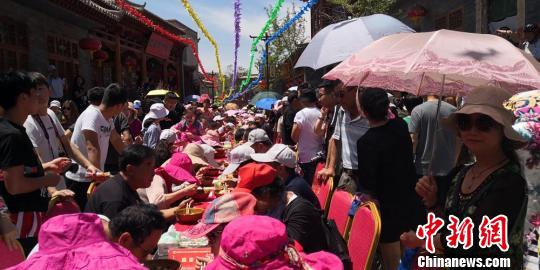 原标题:兰州黄河古镇三千余游客“流水席”品尝全牛宴