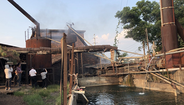 土法炼铝企业生产场面如“刀耕火种”,工人无任何防护措施,厂区无环保设施。