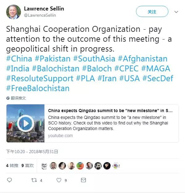 美国网友劳伦斯·塞林(Lawrence Sellin)则关注青岛峰会将取得哪些成果,他认为“地缘政治的转变正在进行中”。