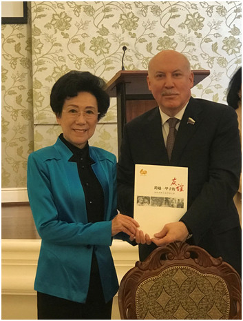 2017年11月6日,在中国人民对外友好协会与中国俄罗斯友好协会共同主办的庆祝俄罗斯中国友好协会成立60周年招待会上,我结识了俄罗斯联邦委员会议员、俄罗斯中国友好协会主席德米特里•费奥多罗维奇•梅津采夫与俄中友协第一副主席库利科娃。交谈中,深切感受到俄罗斯中国友好协会为增进中俄两国人民相互了解、深化传统友谊做了大量工作,积极推动了中俄两国民间友好交流。我也再度回忆起当年同苏联小朋友的友谊——虽然事出偶然,仅是那个时代难得的鲜见的中苏民间交往一束,但这份记忆延伸了多年来我对中俄友谊的美好祝愿。
