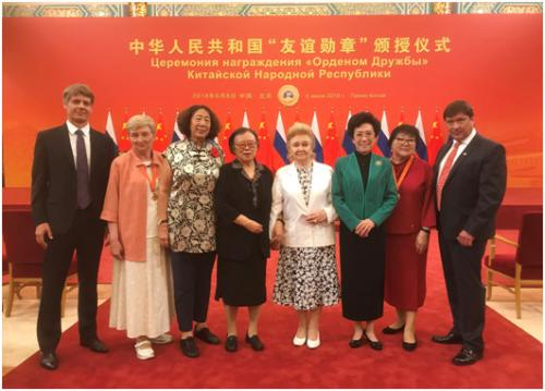 2018年6月8日,中华人民共和国“友谊勋章”颁授仪式在北京人民大会堂金色大厅隆重举行。中国国家主席习近平向俄罗斯总统普京授予首枚“友谊勋章”。作为中国俄罗斯友好协会高级顾问和中苏、中俄友好人士代表,我十分有幸来到金色大厅参加观礼,目睹了庄重的勋章颁授仪式,亲耳聆听两国元首发表重要讲话,为两国人民的时代友谊鼓舞、鼓掌。正如习近平主席所强调的,这枚沉甸甸的“友谊勋章”代表了中国人民对普京总统的崇高敬意,更象征着中国和俄罗斯两个伟大民族的深厚友谊。