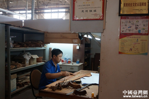中国台湾网6月12日北京讯 (记者 雍紫薇)走进位于北京市海淀区西三旗建材城中路27号的龙顺成,是一家有着百年历史,被认定为中华老字号的京作硬木家具店。不管是2014年APEC会议上为21位国家首脑量身定制的“皇宫椅”,还是内蒙古自治区成立70周年“座屏”作品都出自龙顺成。而北京金隅天坛家具龙顺成工作室“京作”红木家具第五代传人刘更生和他的工匠团队正是这些作品的创新设计者。