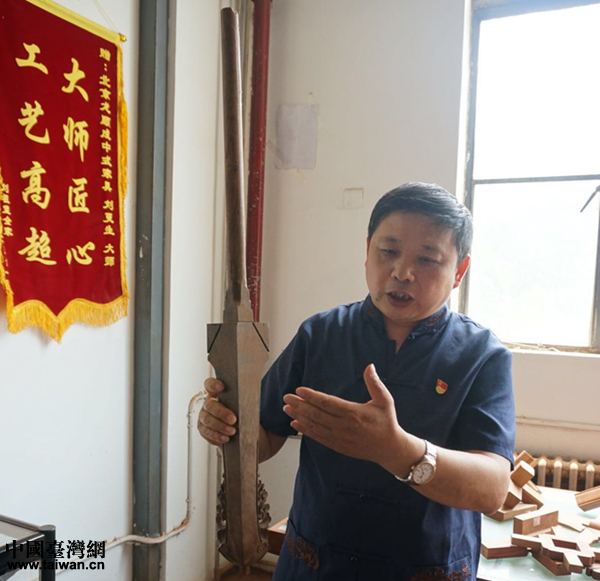 刘更生展示古旧家具修复技术。(中国台湾网 雍紫薇 摄)