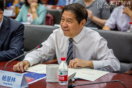 杨晓春强调了人文交流深化、发展中欧关系的重要性,并肯定了中国人民大学作为国家重点大学多年来在欧洲研究及人文交流领域所取得的成就。他对中国人民大学中欧人文交流中心提出了两点希望:一是中心充分发挥智库作用,为中国和欧盟双方深化人文交流提供政策咨询,畅通渠道,消除障碍,切实促进中欧互学互鉴,增进了解,民心相通。二是中心发挥人文交流教育功能,不断提升中国公民开展人文交流的水平和能力,促进欧洲民众不带偏见地了解中国, 夯实中欧战略伙伴关系发展社会和民意基础。