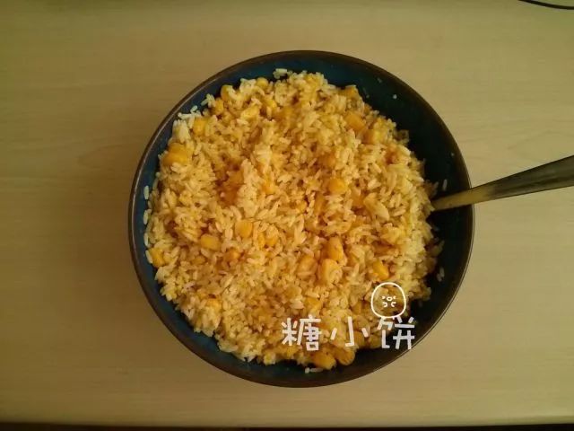 2. 糯米提前一夜用清水泡上,使用前滤去多余的水分。加入盐2.5茶匙和日式咖喱粉25克拌匀,再加入甜玉米粒125克拌匀备用。