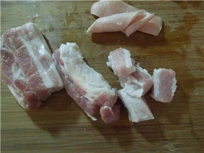 3. 五花肉洗净,切成小方块,一般切成20块左右(方子是20个粽子的量)。