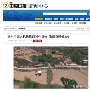 原标题:京东无人机引韩媒关注:覆盖6亿人群 物流费降低30%