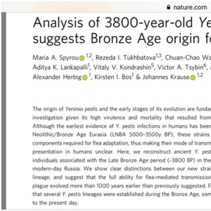 古老的鼠疫杆菌为微生物的传播提供了线索,因而成为大家感兴趣的研究对象。去年11月,Spyrou及其同事曾在《Current Biology》上发表论文,对新石器时代或青铜器时代的六个分离株进行分析,以探索瘟疫如何传入欧洲。