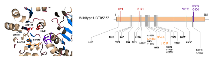 图2 RsUGT85A57中对于底物识别起关键作用的氨基酸位点