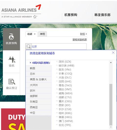 图为5月时韩亚航空的订票页面
