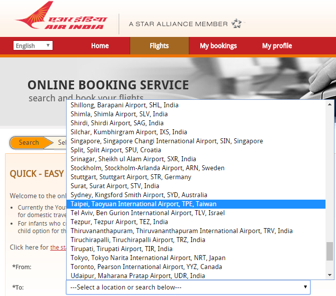 图为印度航空订票页面