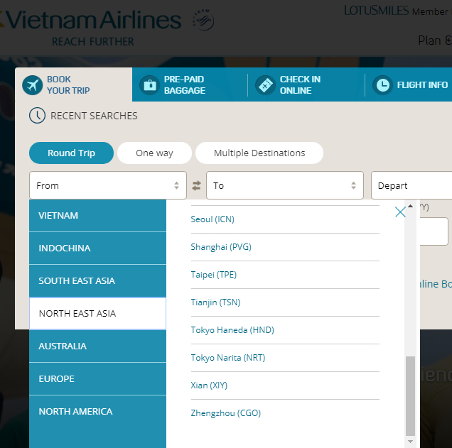 图为越南航空订票页面