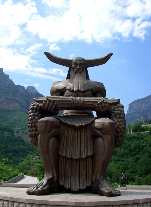中国神话中的炎帝和蚩尤同样带有牛的特征。《绎史》卷四引《帝王世纪》曰:“炎帝神农氏人身牛首。”《述异记》:“俗云,(蚩尤)人身牛蹄,四目六手。秦汉间传说,蚩尤耳鬓如剑戟,头有角,与轩辕斗,以角抵人,人不能向。”炎帝和蚩尤都是原始农业部落的领袖,传说他们是最早教会人类耕作的圣君,故而很容易和牛联系到一起。