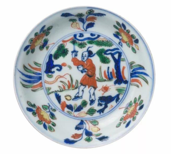 明 五彩张天师斩五毒图盘
