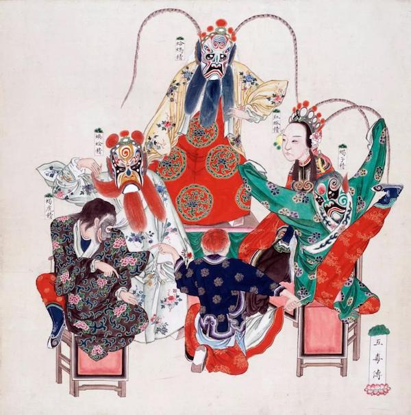 清宫的端午演剧,一般开始于五月初一,至五月初五端午节当日或五月初六日止,以初一、初五两日为主。其中最重要的剧目是“节令大戏”。所谓节令大戏,就是清宫在各节庆期间演出的与节庆相对应的剧目。端午节对应的节令大戏有《灵符济世》《采药降魔》《祛邪应节》《奉敕除妖》《正则成仙》《渔家言乐》等。其中一套十分著名的大戏叫《阐道除邪》,几乎每年必演,且连演数日,是端阳剧中最重要的一套。