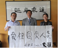 2012年9月24日,外交家吴建民回母校南京田家炳中学, 留下“爱祖国爱人类”六字。