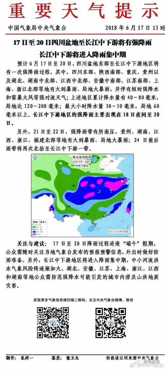 今天至20日,降雨区域逐渐向东移动,影响长江中下游地区,新一轮强降雨即将上线。