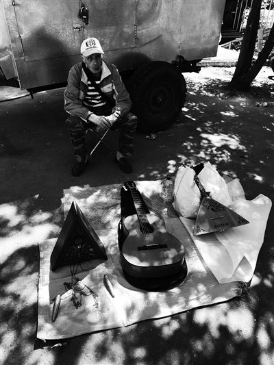 在这片区域的一个角落,记者看到了一个只摆了两件乐器和一个挂钟的地摊,摊主是一个清瘦的老人。“每周末都会带点家里的旧物件过来,主要是为了会会老朋友。”