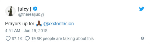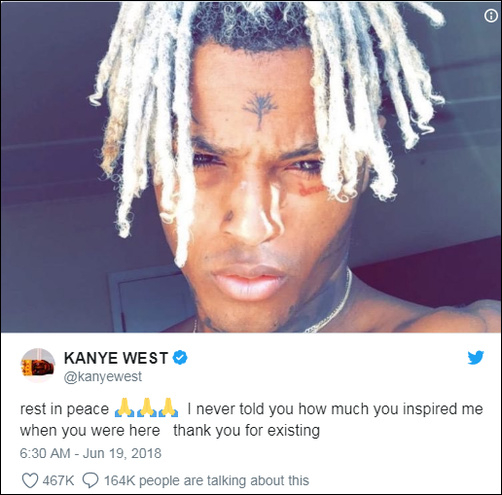 XXXTentacion被枪杀后,侃爷等说唱界人士发文悼念。