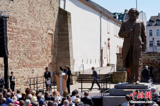 中新社德国特里尔6月19日电 (记者 彭大伟)2018年5月5日,卡尔·马克思诞辰200周年纪念日当天,由中国赠送的马克思雕像在其故乡德国特里尔市隆重揭幕。