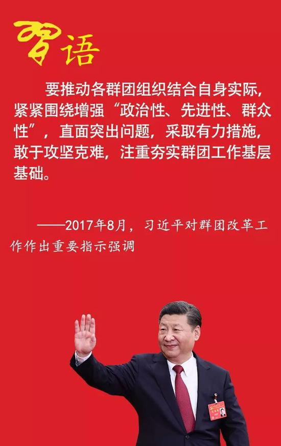 ——2017年8月,习近平对群团改革工作作出重要指示强调