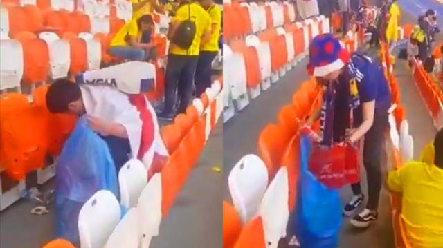 视频:日本球迷赛后捡垃圾获赞叹:礼仪和秩序让他们更加出色