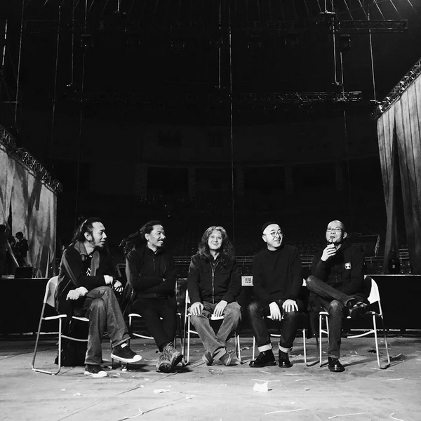 2015年我们有幸和Yat-Kht乐队在北京后山同台演出,并一起合作唱了这首歌,2016年我们在北京录音时正好赶上阿尔波特(Yat-Kht乐队主唱)来北京演出,就邀请他为我们录制了《敕勒川》中间的低音部分。