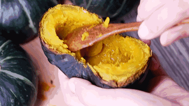 用勺子轻轻一压就变成了泥,很多妈妈都会用它来做小宝宝的辅食,瓜肉细腻好消化,不添加任何调料,南瓜的口味宝宝也特别喜爱!
