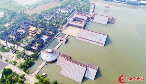图说:广富林文化展示馆位于漂浮在富林湖中的第一个大屋顶和边侧的圆形建筑内。徐程 摄