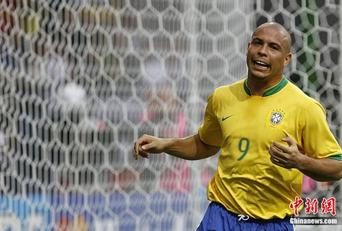 资料图:罗纳尔多。他在韩日世界杯决赛“捡漏”,攻入关键一球。