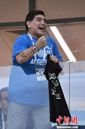 在现场目睹0:3惨败的球王马拉多纳。不过1986年世界杯,他率领的阿根廷队在决赛也收到过对方门将的大礼。中新社记者 毛建军 摄
