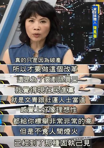资深媒体人陈凤馨就认为,蔡当局是在借年改之名行铲除异己之事!