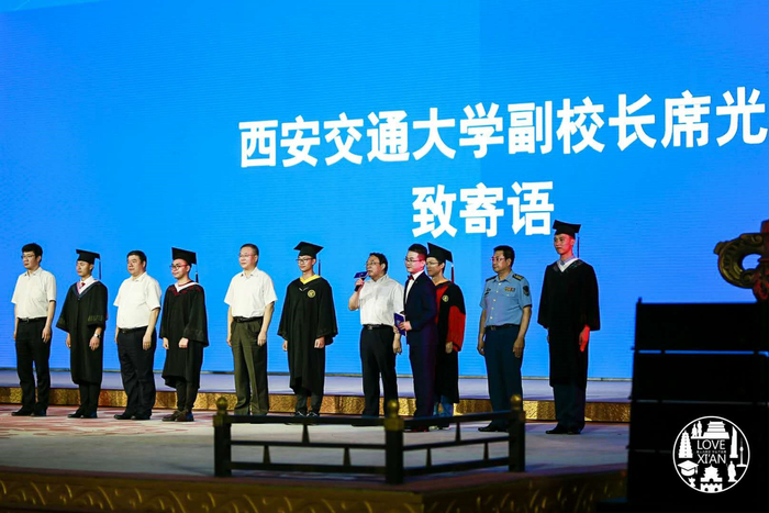 席光副校长也在现场温情寄语毕业生:践行西迁精神,艰苦创业,成就梦想,为世界之光!