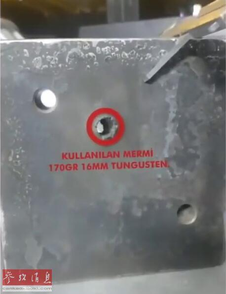 图为Şahi-209轨道炮试射用的75毫米厚钢板,尽管轨道炮弹药口径仅为16毫米,但仍能轻松击穿这种级别的钢板。