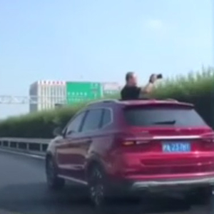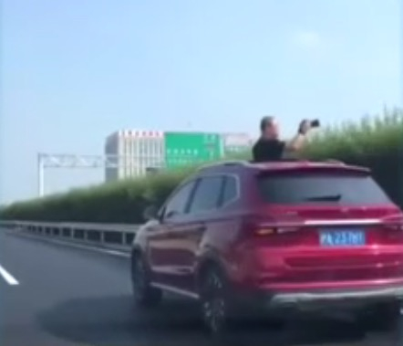 胆子太大!男子在高速上探出天窗拍照