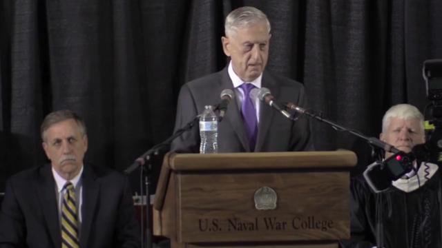 [美国防部长:中国正在复制明朝模式试图改变国际秩序]当地时间6月15日,美国国防部长马蒂斯在美国海军战争学院的毕业典礼上发表演讲,他提出如今美国面临三大挑战,其中第三类就是“政治意愿”,他表示,“我们同中国之间存在一个潜在的竞争,中国怀揣一个长期的计划,想要改写现存的国际秩序,他们正以明朝为范本在计划着,但显然是以一种更有力的方式。”(《环球时报》三缺二视频组)@这视频