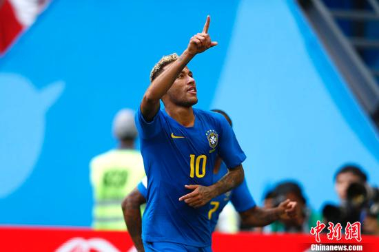 北京时间6月22日晚,2018俄罗斯世界杯E组次轮巴西队与哥斯达黎加队的较量在圣彼得堡打响。内马尔在比赛第77分钟为巴西队赢得点球,但通过VAR技术回看,当值主裁取消了点球判罚。进入伤停补时后库蒂尼奥打破僵局,内马尔锦上添花,助巴西队2-0取胜。 中新社记者 富田 摄