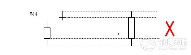然而,不是所有的图形组合都能够被简化,因为合并的K线之间必须存在被包含的关系。例如当第一根K线为带上下影的阳线,然后再接一颗向上跳空的十字星,二者就不能合并为一根实体更长、上影变短的大阳线,因为十字星的出现往往具有变盘的意味。如图4就不需要简化。