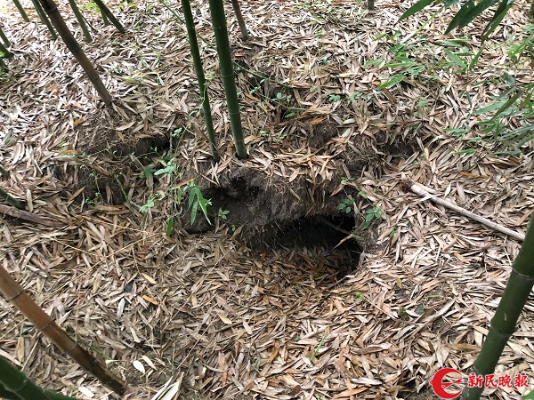 图说:狗獾打的洞 新民晚报记者 陆梓华 摄