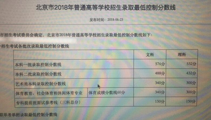 原标题:2018高考北京分数线出炉:一本理科532 分,一本文科 576分