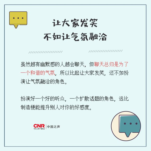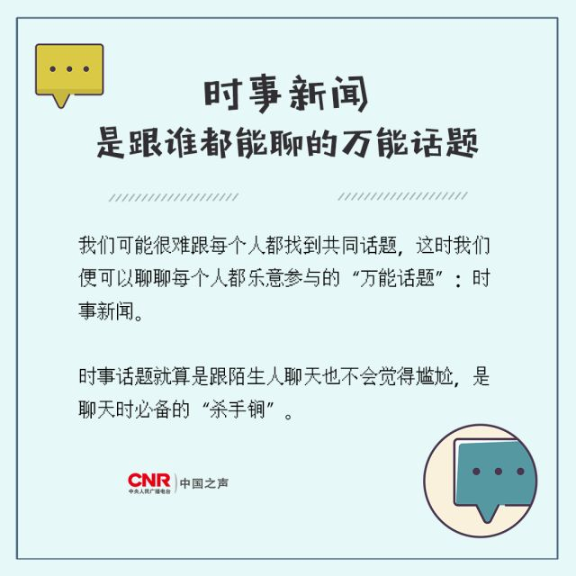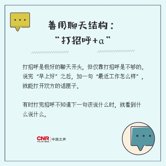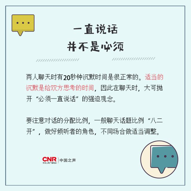 导读跟人聊天的时候,你有没有遇到过这些情况:聊着聊着就尬了,想找个地缝钻进去?或是聊着聊着对方就不开心了?再或者是打完招呼就找不到下一步该聊什么话题了?(来源:中国之声 ID:zgzs001 制图:徐啸)