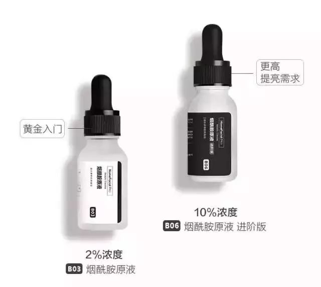 HFP烟酰胺原液的美白原理,是阻断黑色素。可以点涂单用,加快暗沉、痘印的代谢;也可以滴入其他水、乳、面膜、身体乳中使用,夏天就可以穿上美美的吊带衫了。