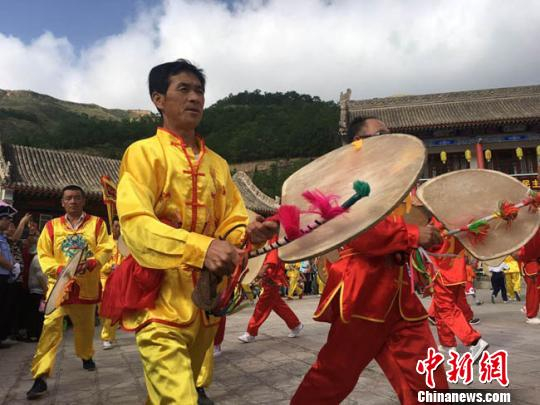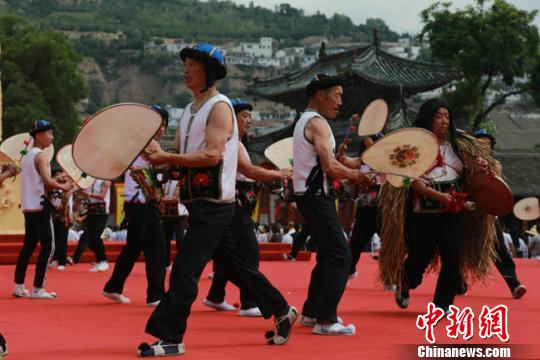 甘肃武山县旋鼓舞是当地一种古老族民间舞蹈,又称羊皮鼓舞,流传年代久远,旋鼓表演少则十几人,多则上百人或上千人,以男性青壮年为主。2008年,武山旋鼓舞被列入国家级非物质文化遗产名录。 张婧 摄