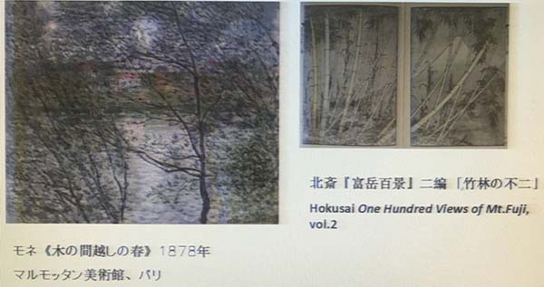 左:莫奈《穿过树枝的春天》;右:葛饰北斋《富岳百景》(翻拍于马渊明子论坛ppt)