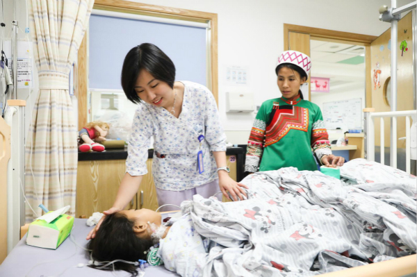 刚入院时小瑶芬对陌生环境不适应,不停地哭,还一直低着头,不和任何外人说话。但10多天来,在医生护士无微不至的照顾和关爱下,小瑶芬不再抗拒治疗。护士长赵艳君说,她这几天看见医生护士居然开始主动微笑,昨天更是乖乖地配合进行了手术。