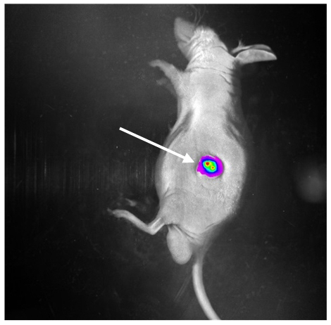 小鼠左背部出现荧光反应