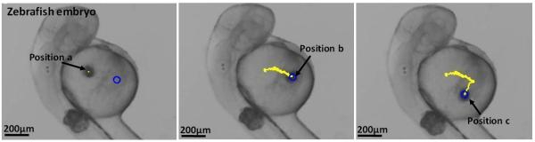 微型机器人在斑马鱼胚胎中运动