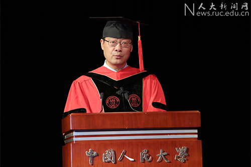 毕业生亲属代表曹路向各位老师表示感谢,希望毕业生不忘母校、不忘恩师、不忘奋斗,牢记校训使命、终生学习探究,以优异的成绩回报母校、回报社会。毕业20年的1998届校友代表、中国对外经济贸易信托有限公司党委书记兼总经理伊力扎提以生动的语言回忆了自己与人大劳人院的点点滴滴,回顾了20年来波澜壮阔的改革历程,从时代的变迁中告诉毕业生要做“时间的主人”,勉励大家做一个有情有义、独立思考、无畏困难的人。毕业生班主任黄森杰代表学院教师向毕业生传递临别赠言。他结合自己在东西方开展学术活动的经历,讲述了劳动人事学院在国际学术界的优良声誉,勉励毕业生继续在各行各业,为社会作出更多贡献;他还引用乔布斯在2005年斯坦福大学毕业典礼上的演讲“Stay hungry,Stay foolish”,希望大家坚持理想,时刻准备尝试新东西,走向人生更加辉煌的旅程。