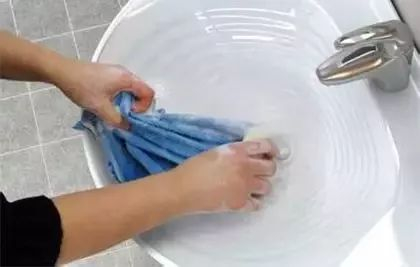 泡洗厨房油污抹布: